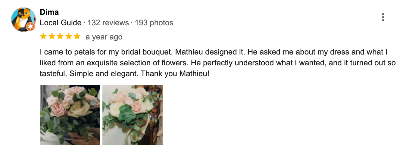 Real reviews from real people—see how our flowers have made special moments unforgettable!